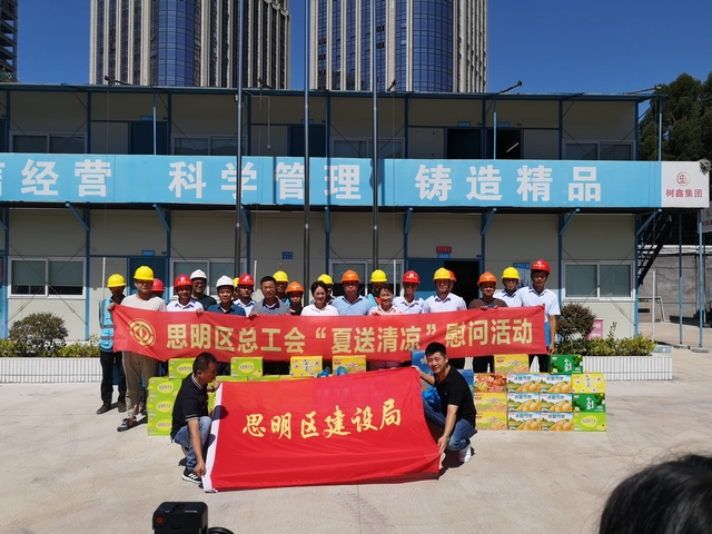 2019年8月9日上午10:00,思明區(qū)總工會(huì)聯(lián)合區(qū)建設(shè)局領(lǐng)導(dǎo)到觀音山綜合服務(wù)中心項(xiàng)目進(jìn)行‘夏送清涼’防暑降溫慰問活動(dòng)。建設(shè)局及工會(huì)相關(guān)領(lǐng)導(dǎo)對(duì)項(xiàng)目部一線員工不畏酷暑、嚴(yán)謹(jǐn)施工的精神進(jìn)行了表揚(yáng),對(duì)項(xiàng)目部文明施工做了充分肯定并給出相關(guān)指導(dǎo)意見